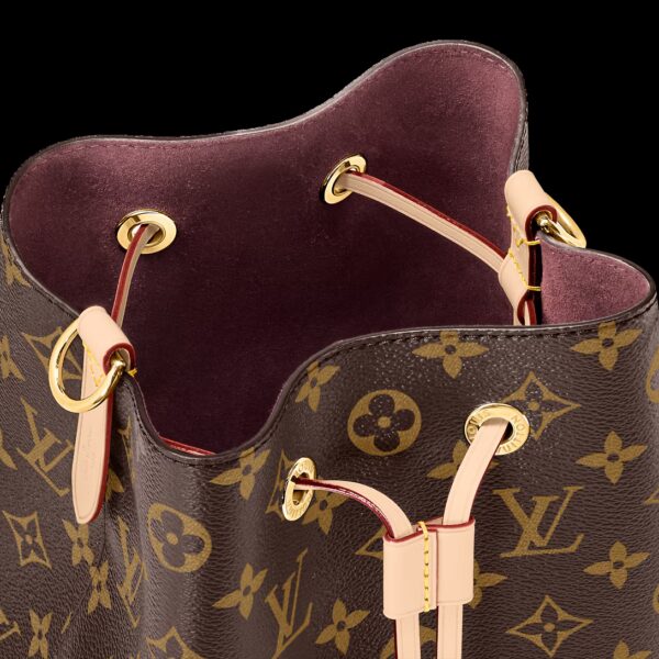The NéoNoé BB in Monogram canvas with natural leather trim is a smaller interpretation of the House’s iconic NéoNoé bucket bag. Spacious enough to hold essentials such as keys, earphones, and an smartphone, it features a leather drawstring to close the bag and keep belongings secure. A removable handle and detachable, adjustable strap offer multiple carry options.